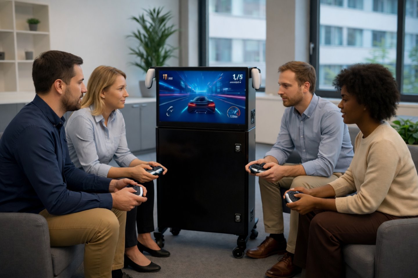 Moderne Unternehmen setzen auf innovative Mitarbeiterangebote – eine Gaming Station macht Ihren Arbeitsplatz sichtbar attraktiver.